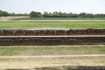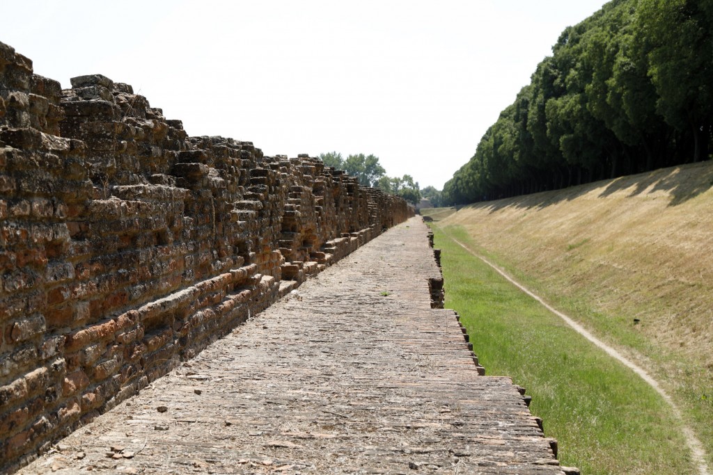 The operations on the embankment returned this to its ancient form, with works to dig out the counter-wall and reshape the slopes in particular. The area which connects the embankment and the defensive towers (which was not emptied, but instead left full of earth) benefited from the construction of a rampart, within which stands a trapezoidal figure inspired by the historical iconography found during the restoration: the rampart constitutes the inner part of the embankment of the walls, and is raised above the main defensive line (Bernardi-Pastore 2003, p. 134).