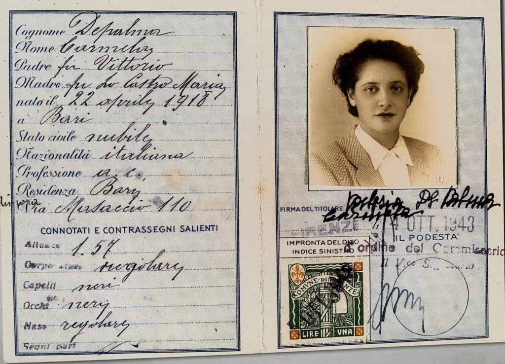 The forged identity document of Valeria Bassani Sinigaglia, wife of Giorgio Bassani, created in Florence in October 1943 (photo courtesy of the Giorgio Bassani Foundation).